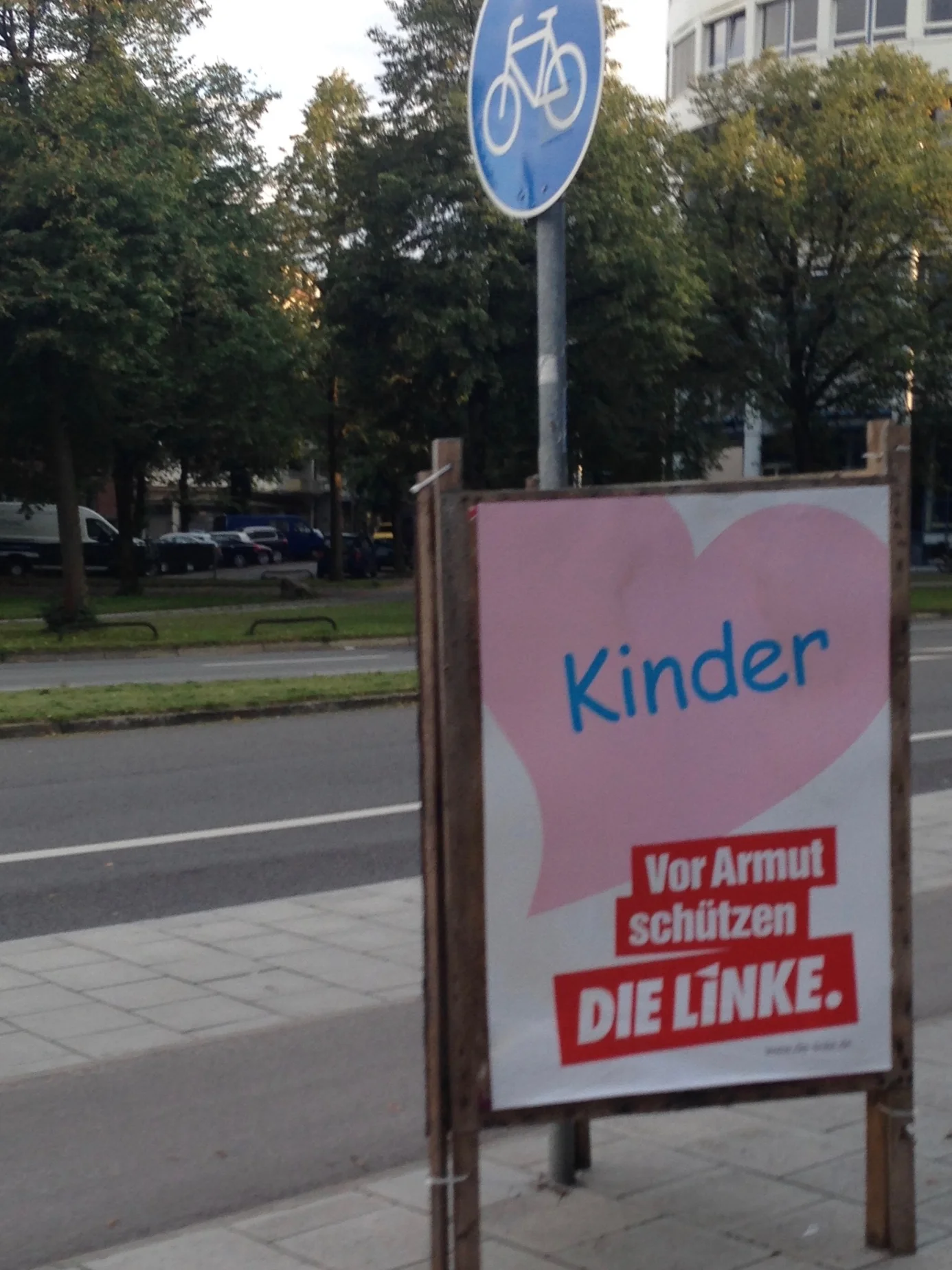 The "Left" party is the successor to the East-German socialist party. This legacy makes it tough to form alliances, as in 2005 and 2013. Their posters focus on social issues.